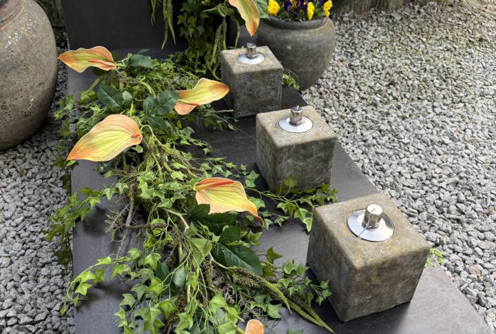 Kompozycja na szerokiej zielonej trawie z białymi kaliami oraz bukiet – oryginalna i pełna klasy, elegancka dekoracja na grób.