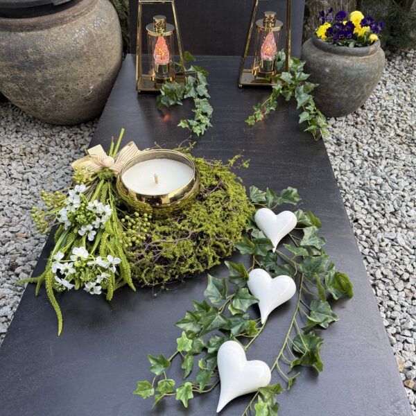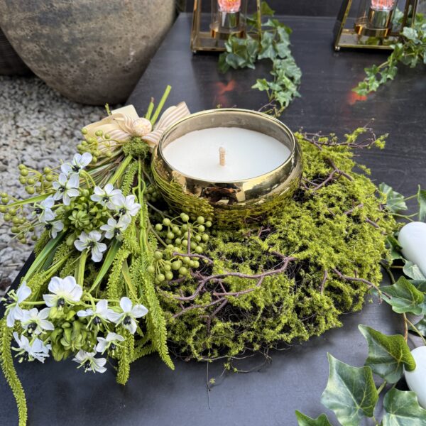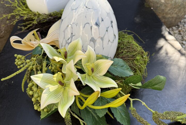 Wiosenny komplet: bukiet + kompozycja w jasnym różu, bieli i limonce. Świeże, delikatne połączenie kolorów – idealny zestaw na cmentarz.